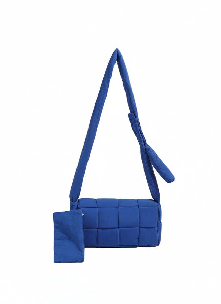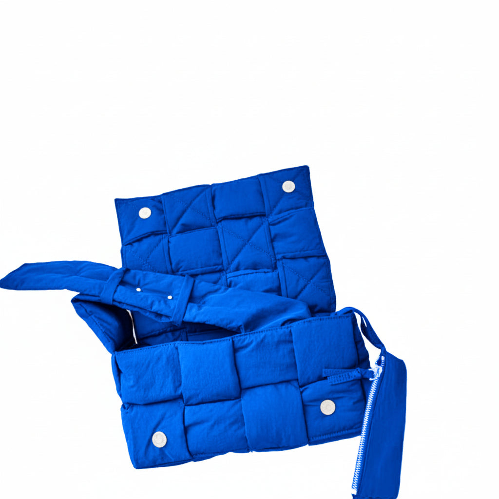 Crafted from lightweight, water-resistant nylon in a striking electric blue tone.