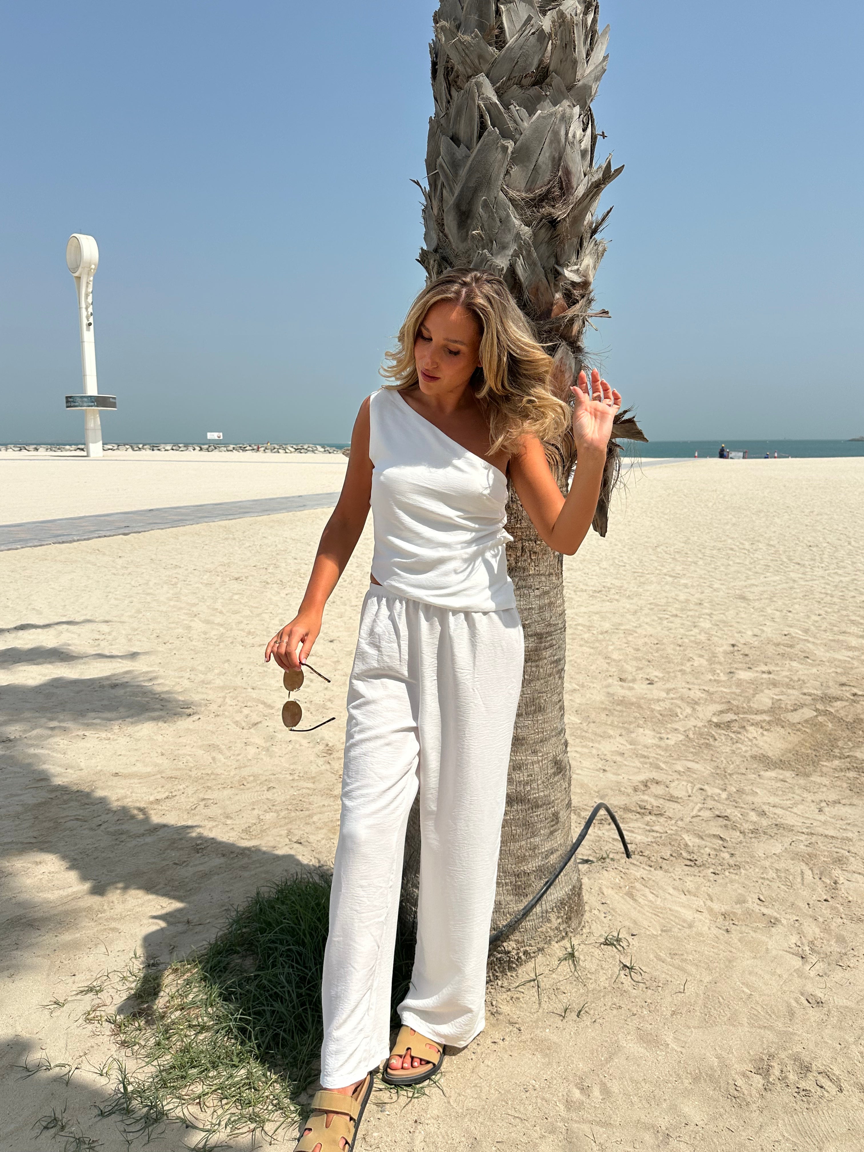 This two-piece set includes a soft cropped tee and high-waisted shorts.